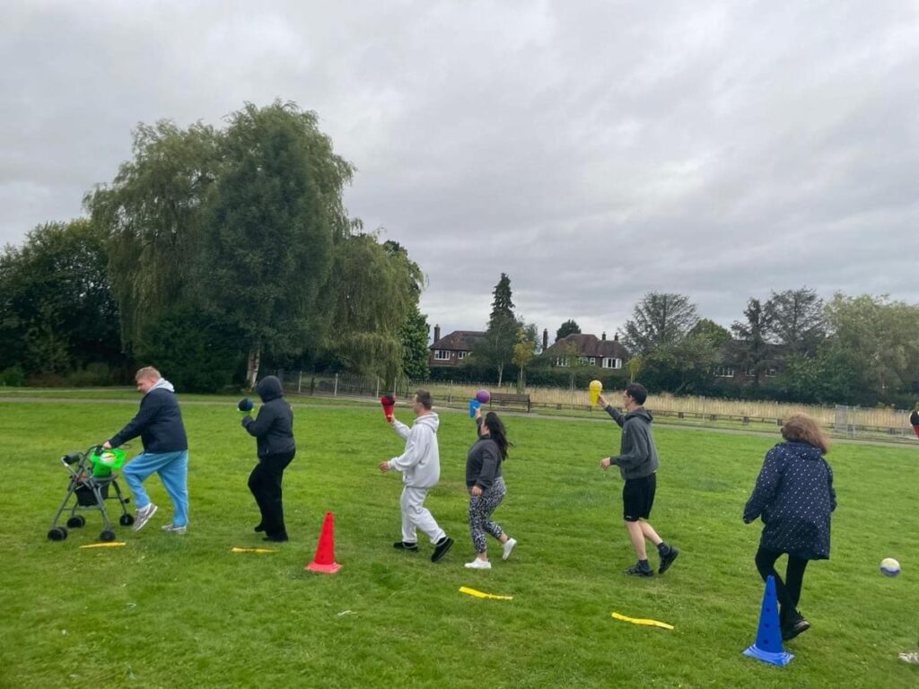 Sue had such a great time this week with the Time Out Group doing Parachute Games in the park. They also celebrated the Olympic Games with the opening parade theme, Olympic Rings, volleyball and football.